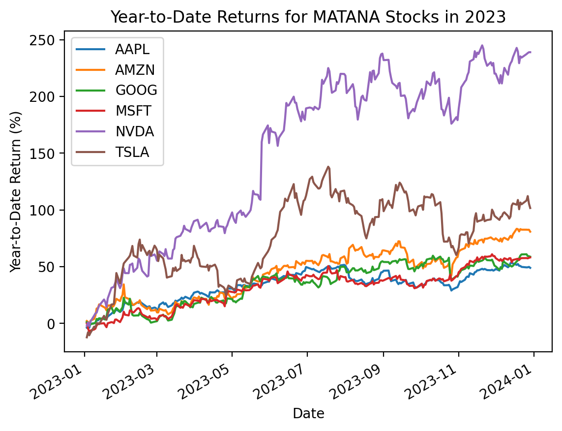 plt.title('Year-to-Date Returns for MATANA Stocks in 2023')