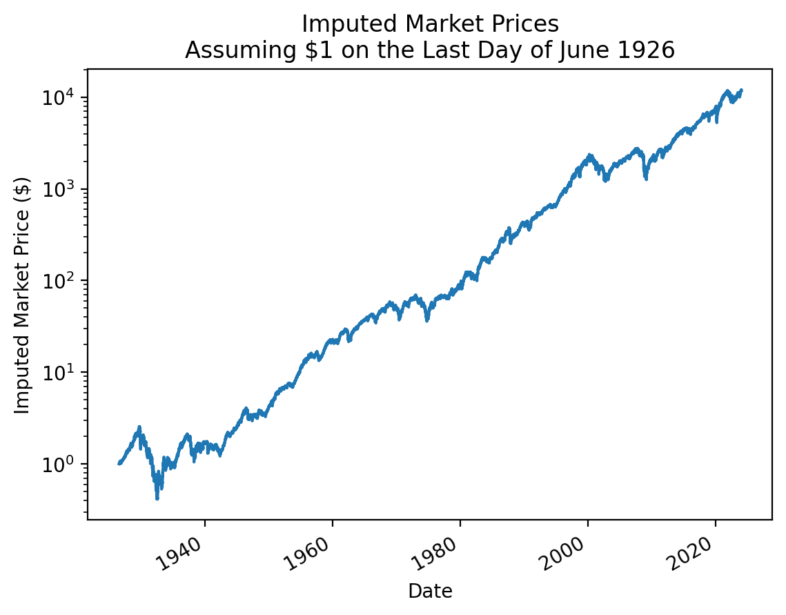 We can use market returns to impute market prices relative to the last day of June 1926.