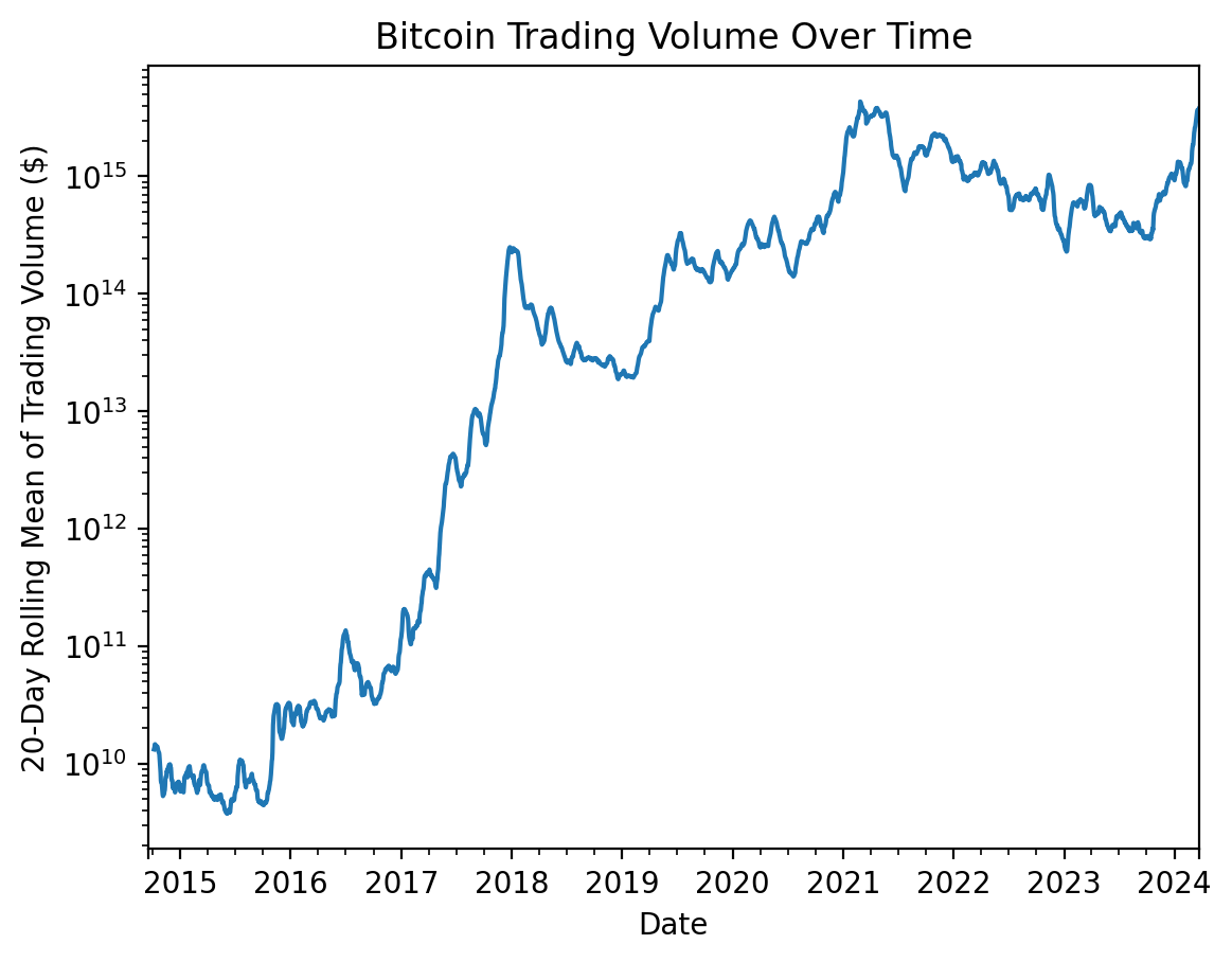 As a side note, Bitcoin trading volume has increased 100,000 times over the past decade and is volatile!
