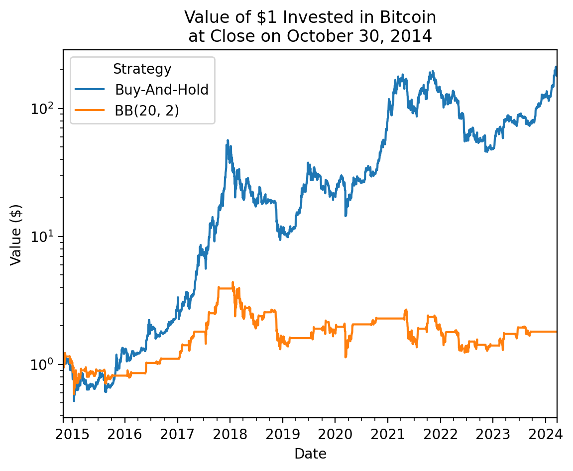 names_bb = {'Return': 'Buy-And-Hold', 'Strategy': 'BB(20, 2)'}