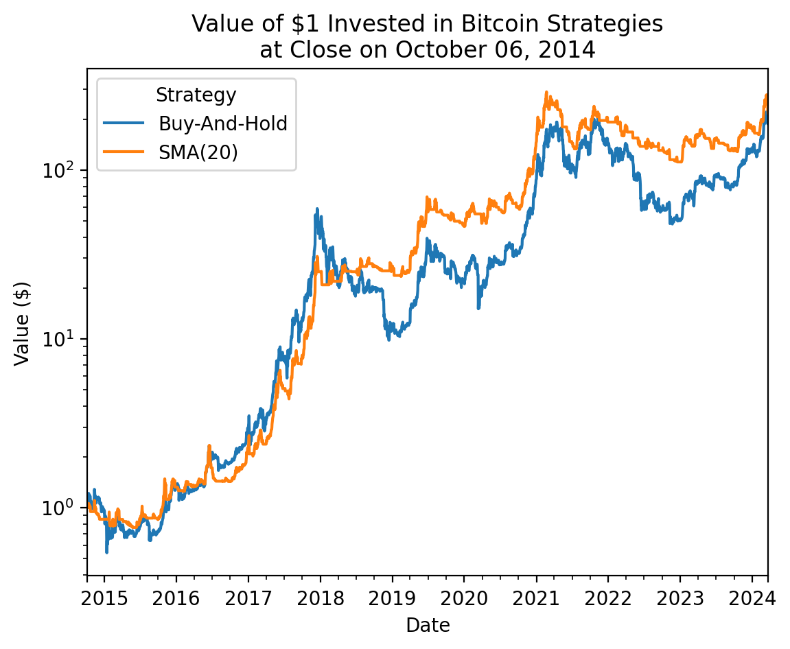 %config InlineBackend.figure_format = 'retina'3.1 Implement the SMA(20) strategy with Bitcoin from the lecture notebook