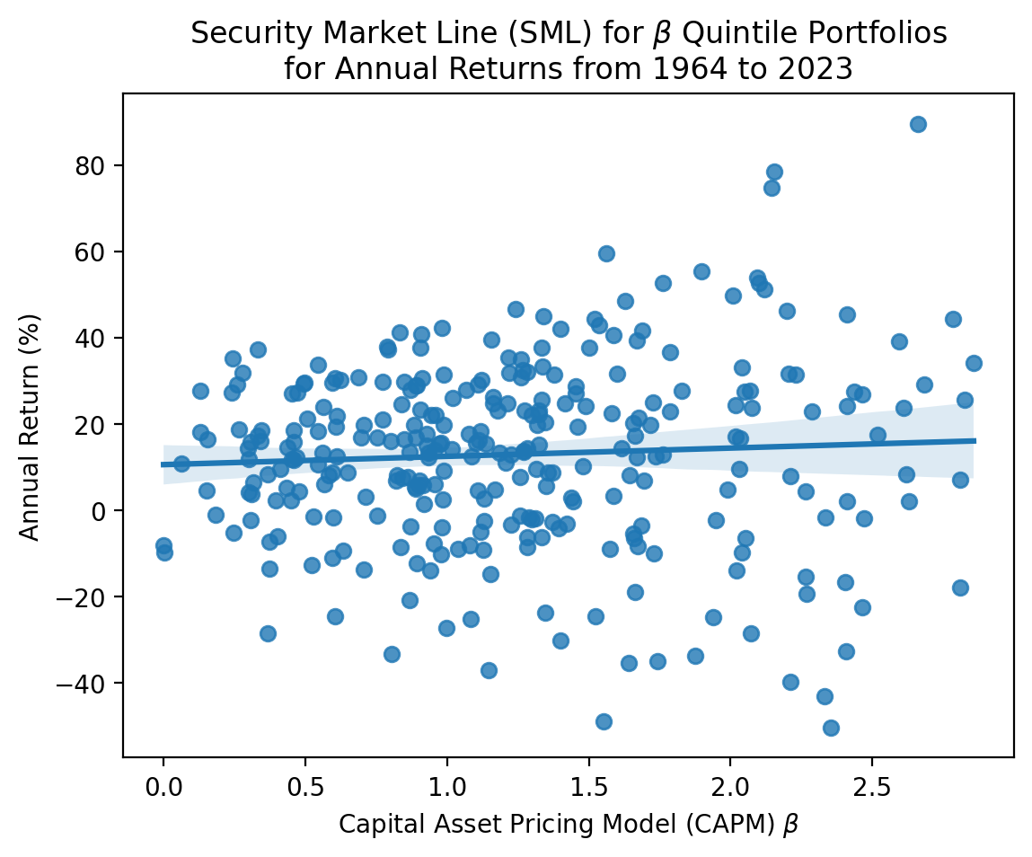 - The SML is “too flat” empirically, and high \(\beta\) assets tend to have lower returns than expected