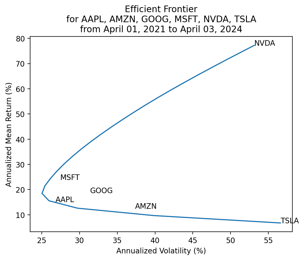 bounds=[(0, 1) for c in returns.columns], # bounds limit the search space for each portfolio weight