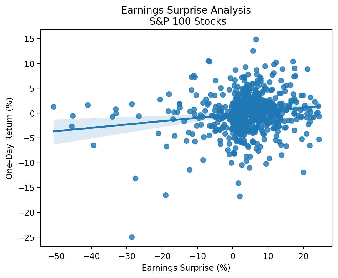plt.title('Earnings Surprise Analysis\n S&P 100 Stocks')